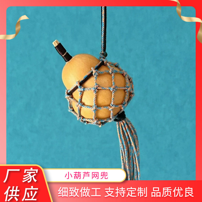 手工编织小葫芦网兜彩色编织网袋 可拆卸车挂装饰挂件手把件 批发