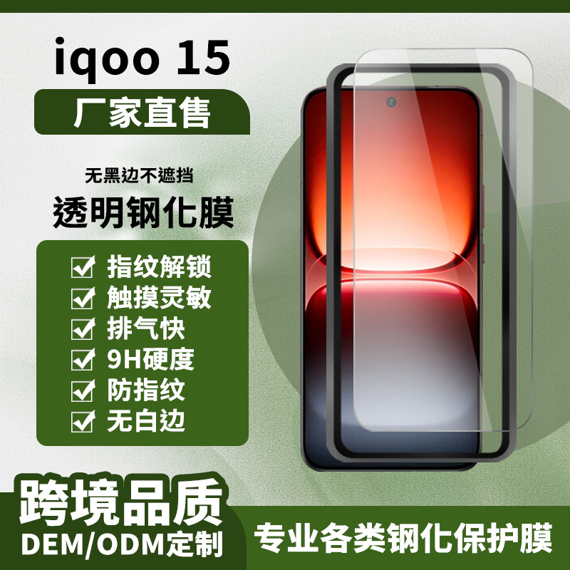 适用iQOO 15 手机防指纹无孔超声波解锁贴膜 弧边高清透明保护膜