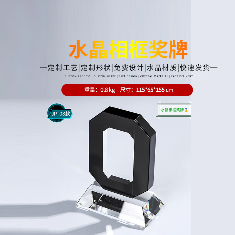 厂家定制一体压型水晶相框奖牌 聚会毕业典礼刻字水晶奖牌批发
