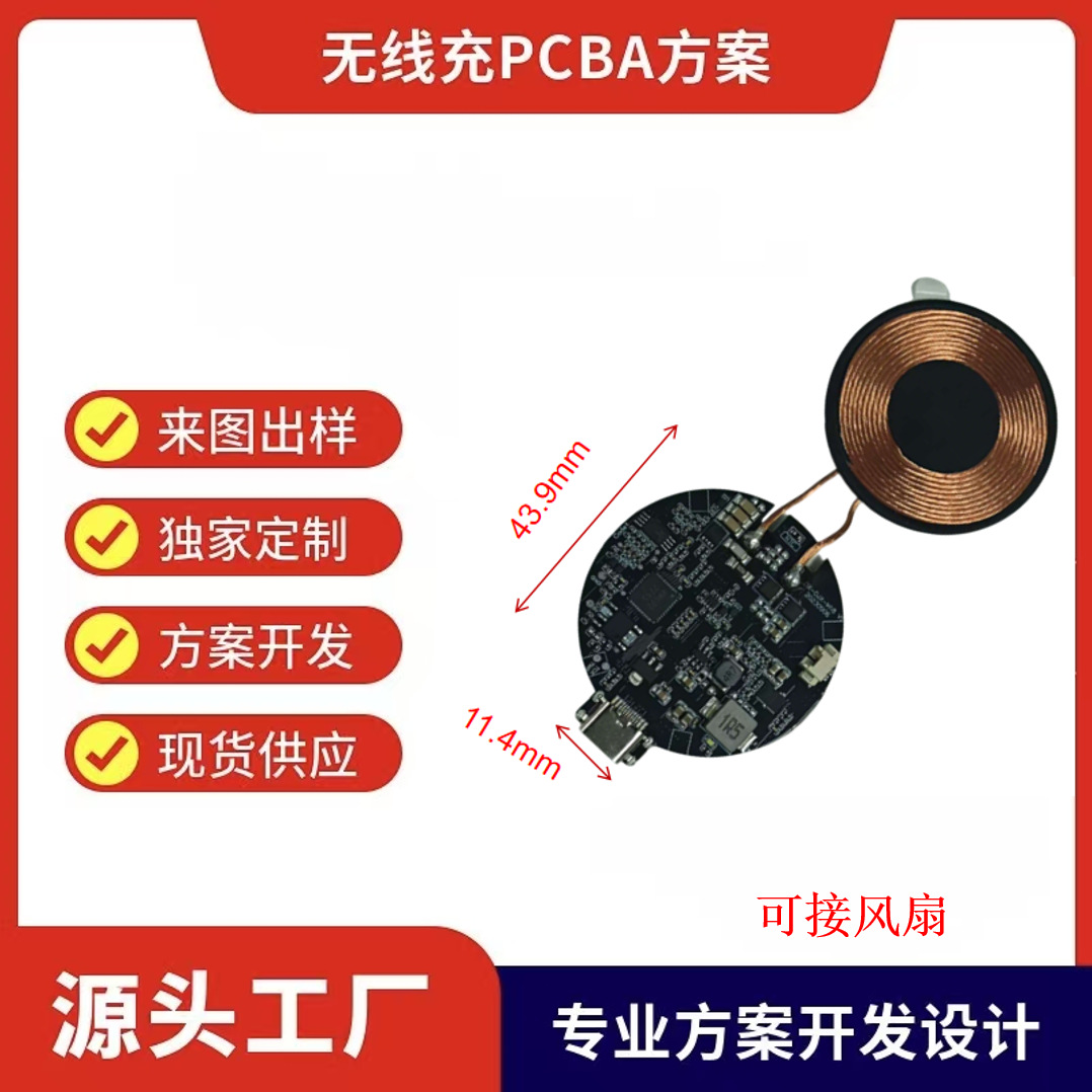 源头厂家15W单线圈无线充方案无线充PCBA兼容10W7.5W5W可过QI认证