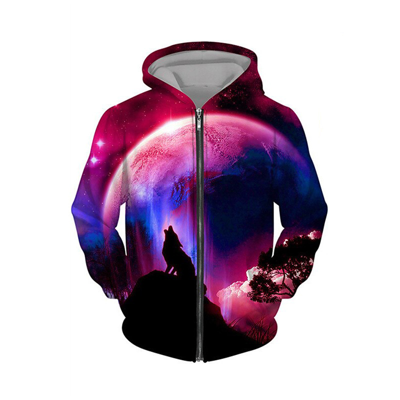男士运动衫拉链套头长袖休闲卫衣动物狼3D印花拉链卫衣