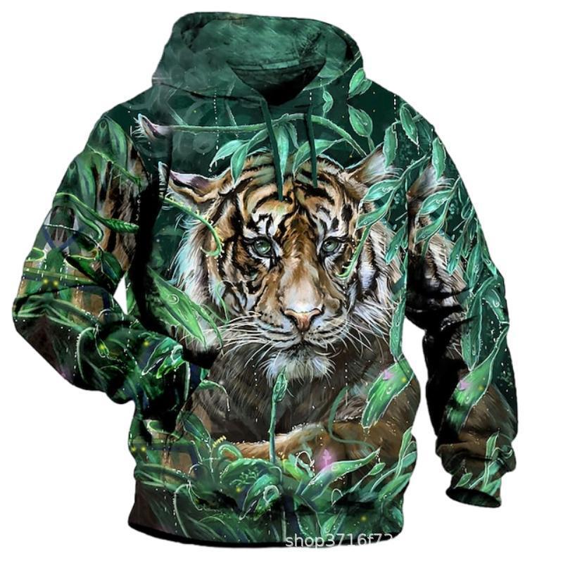 新款休闲动物狼图案长袖帽衫欧美跨境3D数码印花男士连帽卫衣上衣