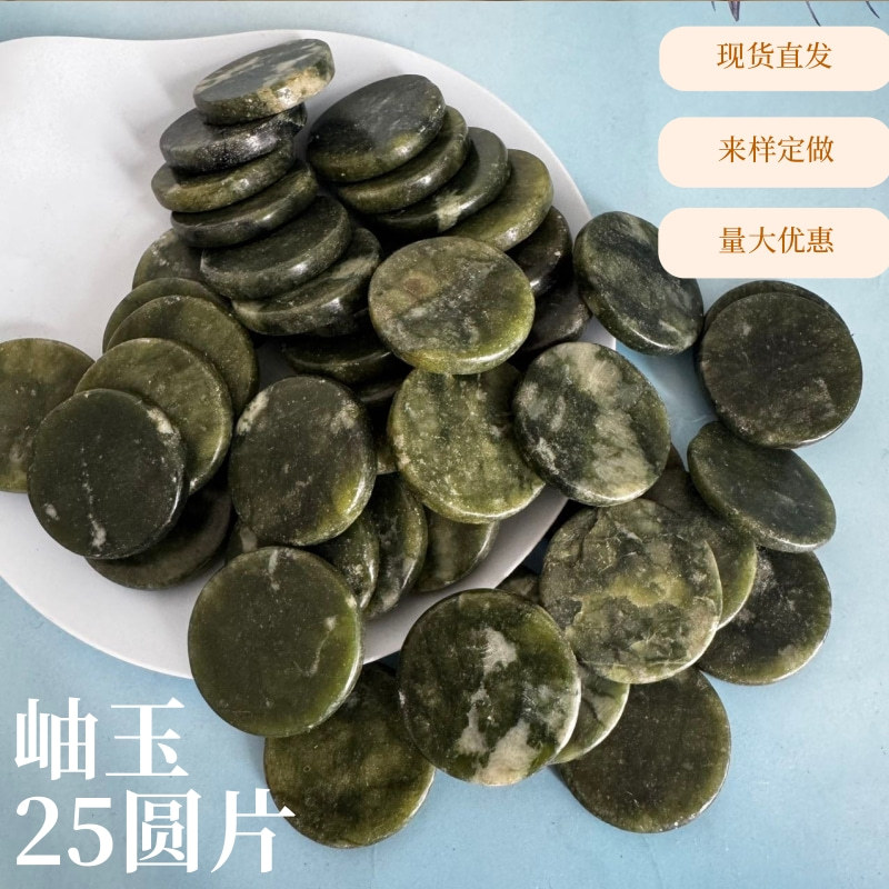现货包邮岫玉25圆片养生保健按摩定制异形工艺品枕头床垫玉石片