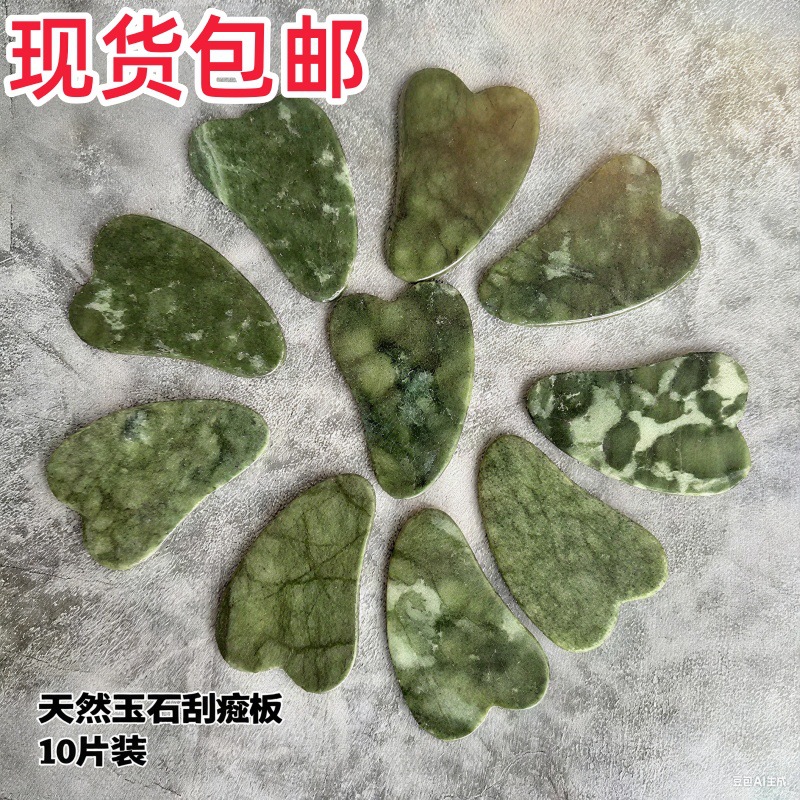 包邮白绿甲翠按摩棒器玉片脸部美容刮痧玉石片抛光A货嫁接玉石圆