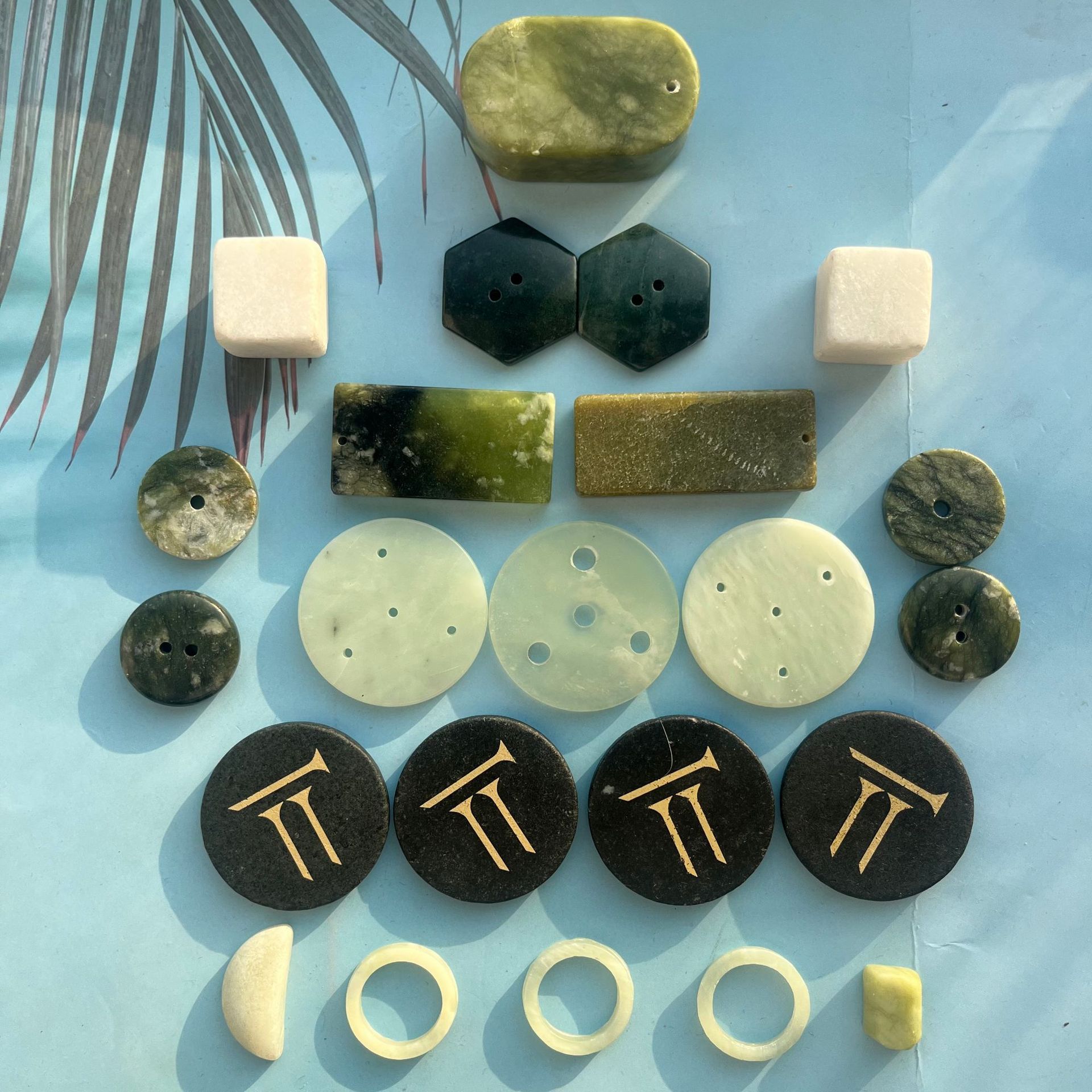 包邮绿理石玉石片25圆片床垫坐垫衣服扣子装饰用岫玉现代简约