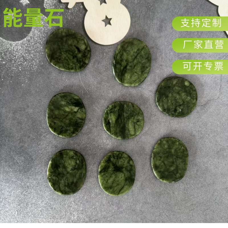 玉石厂家现货供应50绿理石托玛琳坐垫光子能量床岫玉圆片玉石片