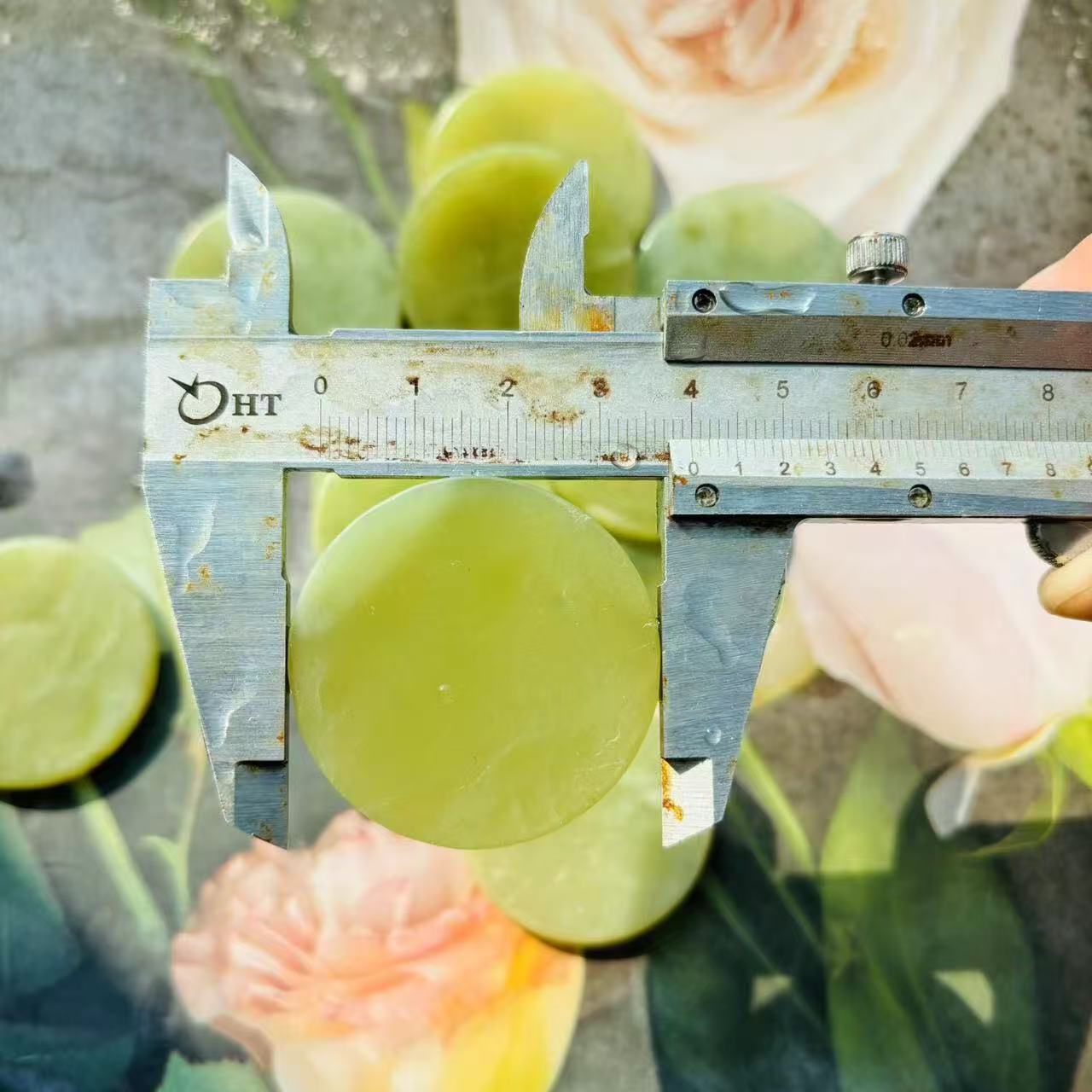 火爆热卖岫玉玉石片圆片40mm坐垫床垫嫁接睫毛按摩抛光玉石片玉器