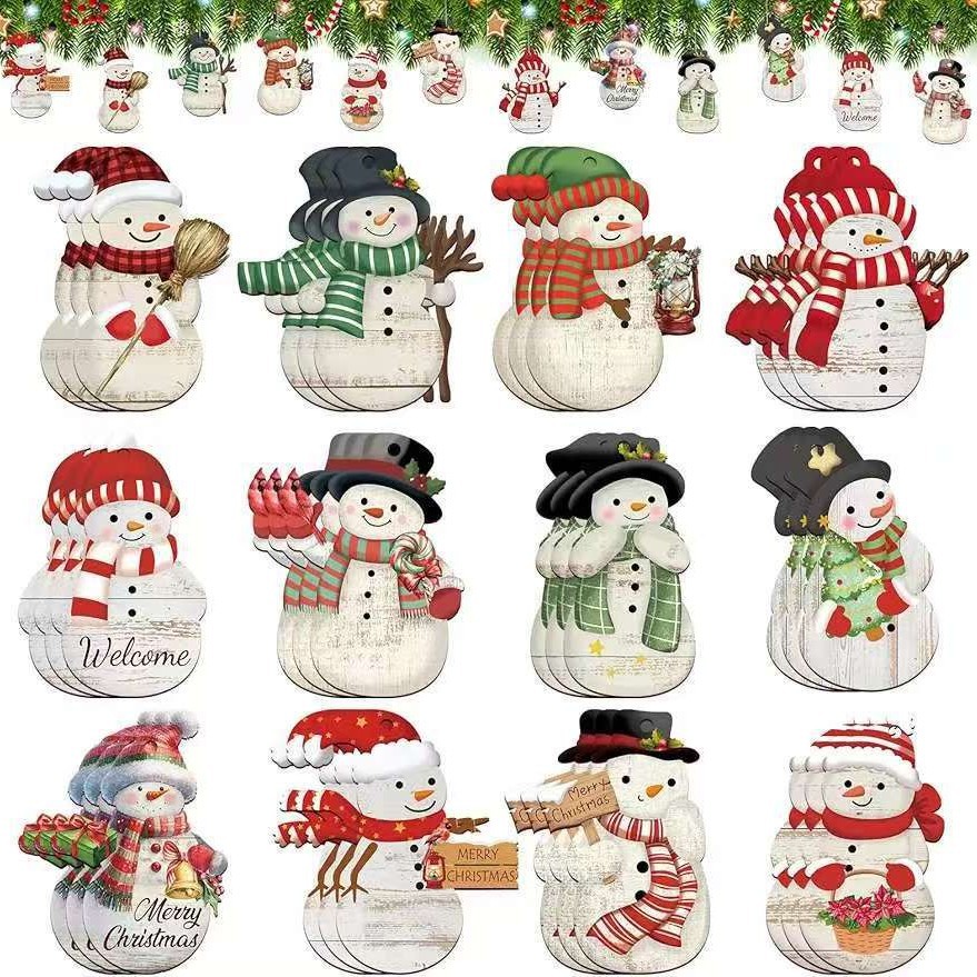 跨境新品圣诞雪人木质悬挂装饰适用于节日派对家居装饰