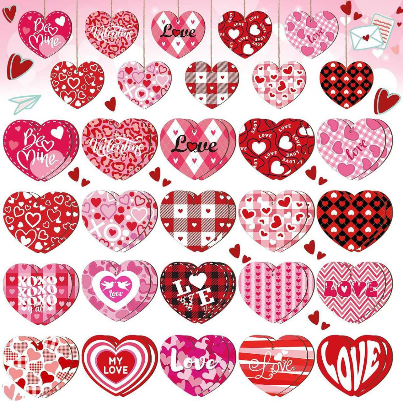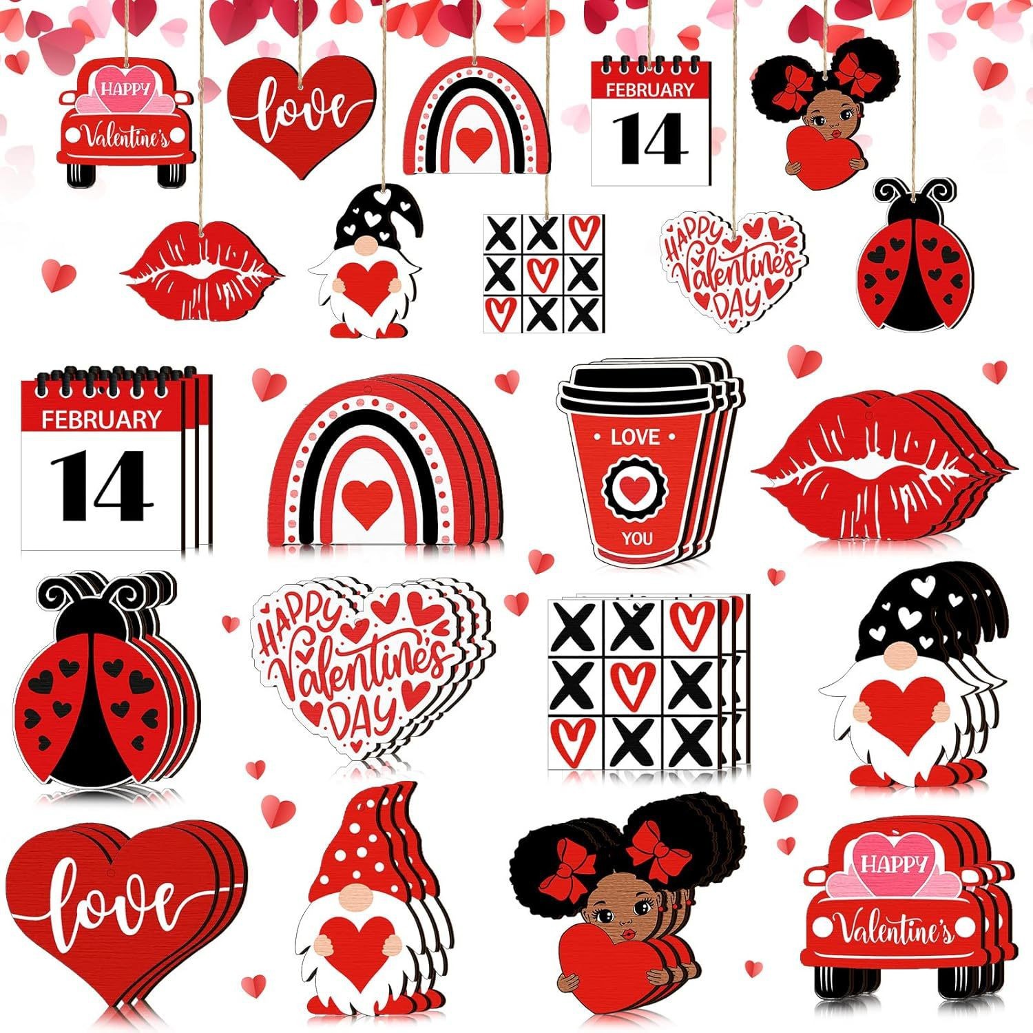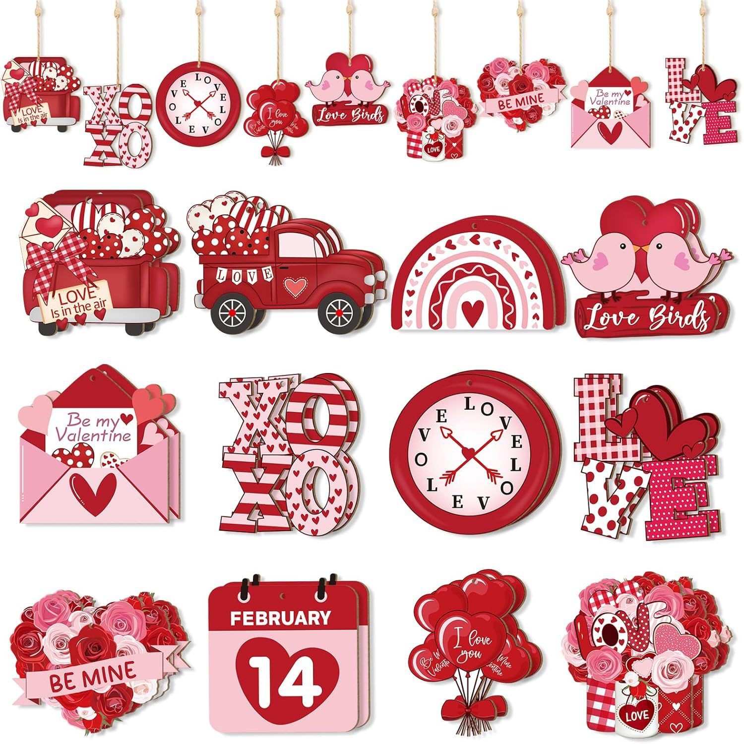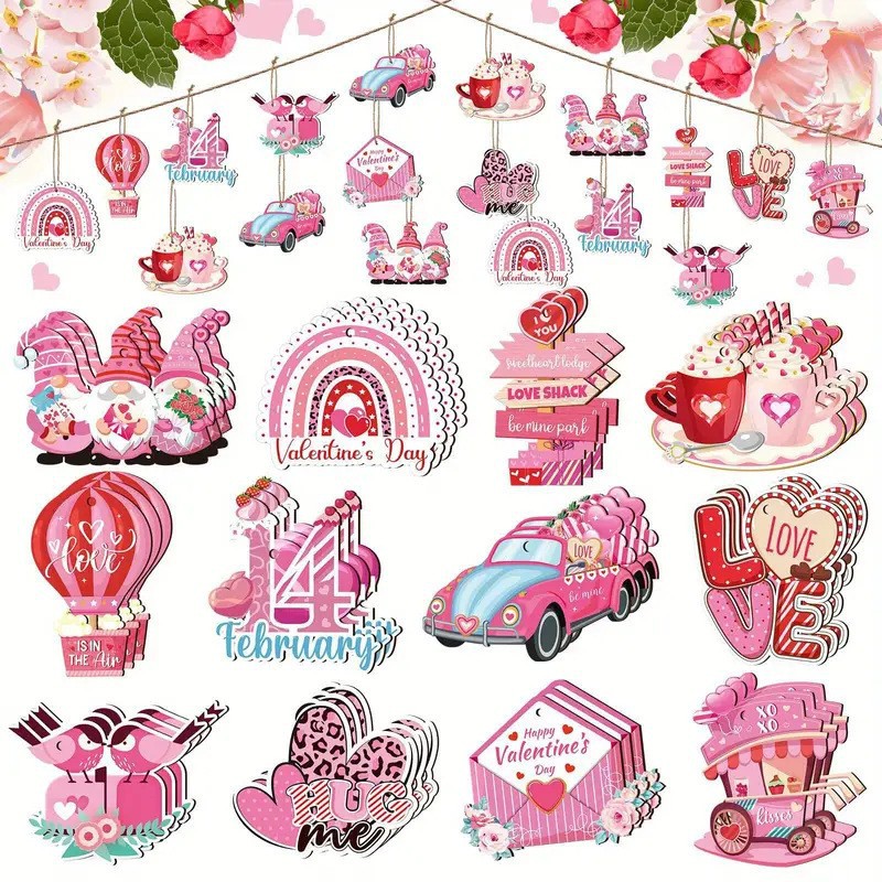 情人节24件2d平面木质悬挂装饰适用于节日氛围装饰布置