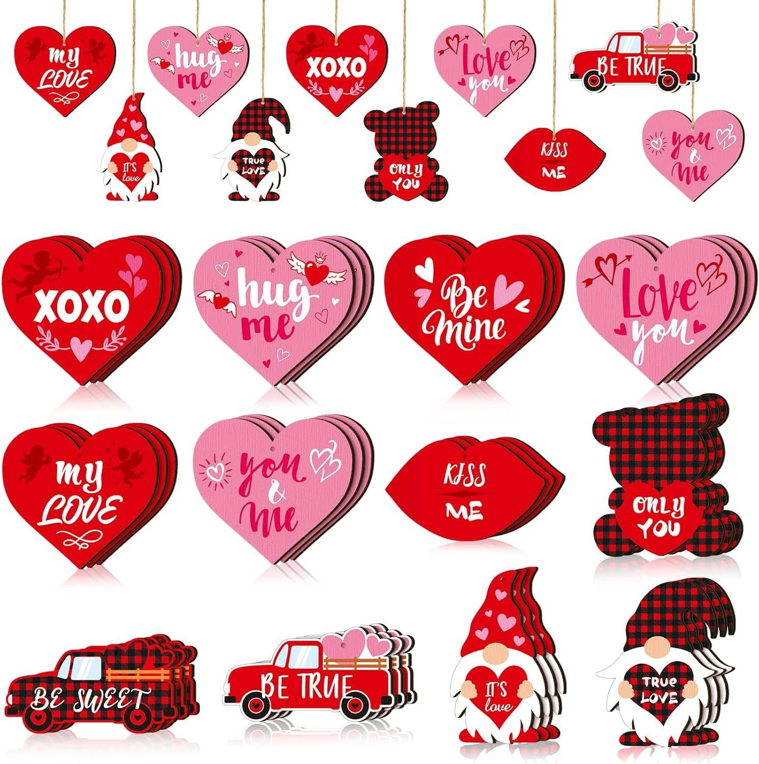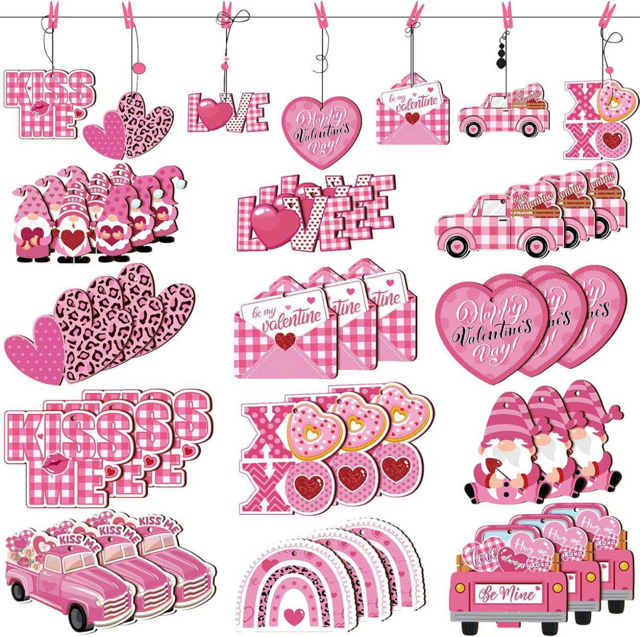 36件情人节木制装饰粉红色饰品心形小矮人卡车装饰挂饰派对礼物