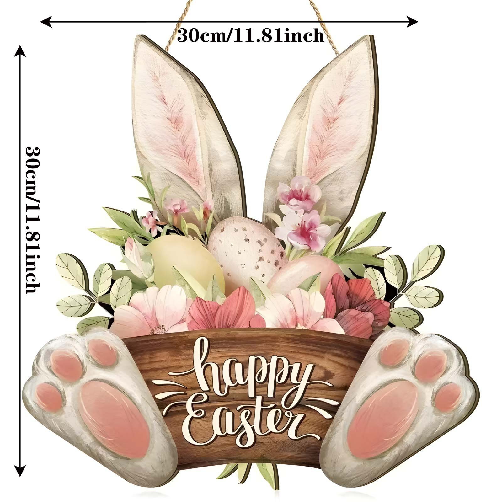 跨境新品复活节彩蛋兔子木制挂门标志装饰复活节花卉春天门牌挂牌