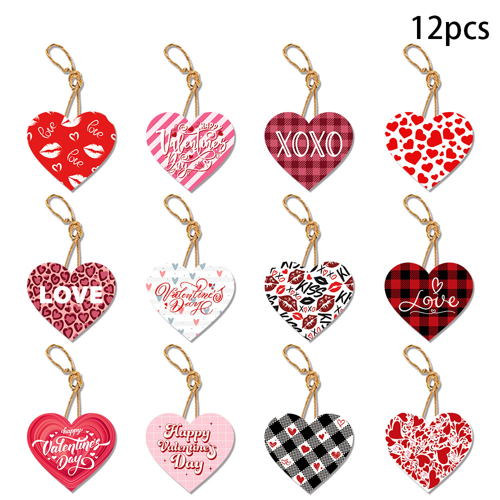 情人节新品12件2D木制平面挂饰 适用于婚礼 周年纪念装饰布置