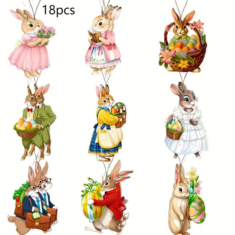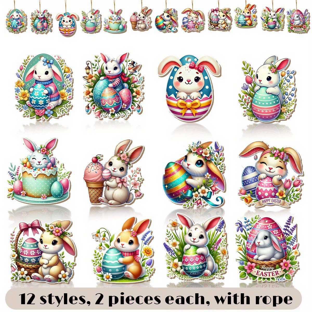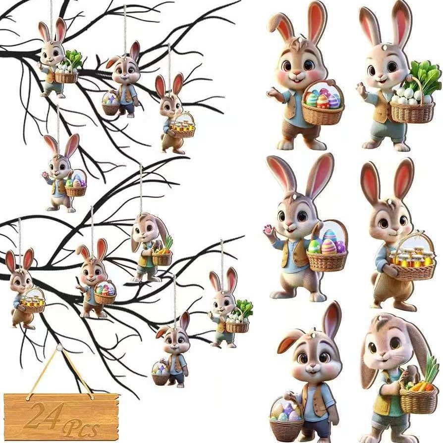 24件套新款复活节小兔子木制悬挂装饰居家派对春季派对礼物装饰品