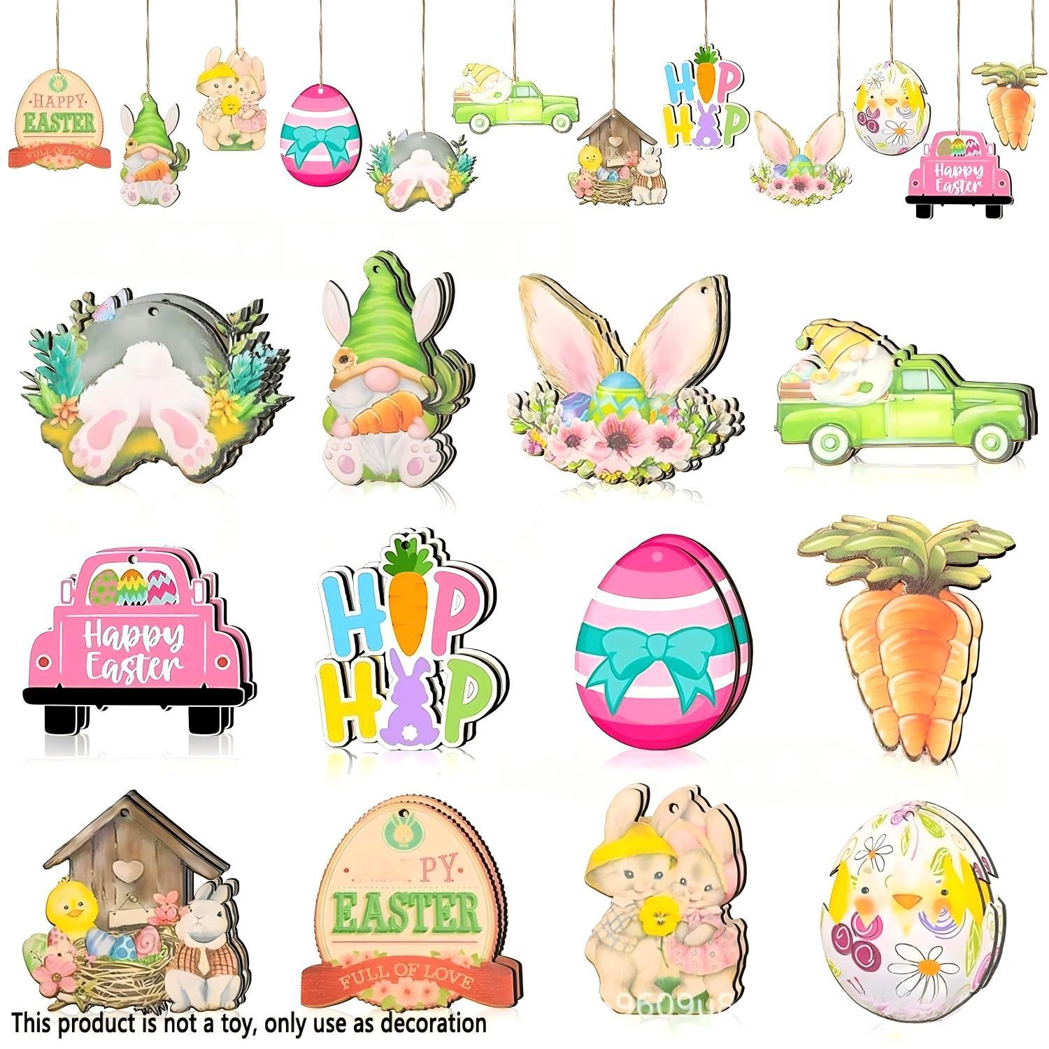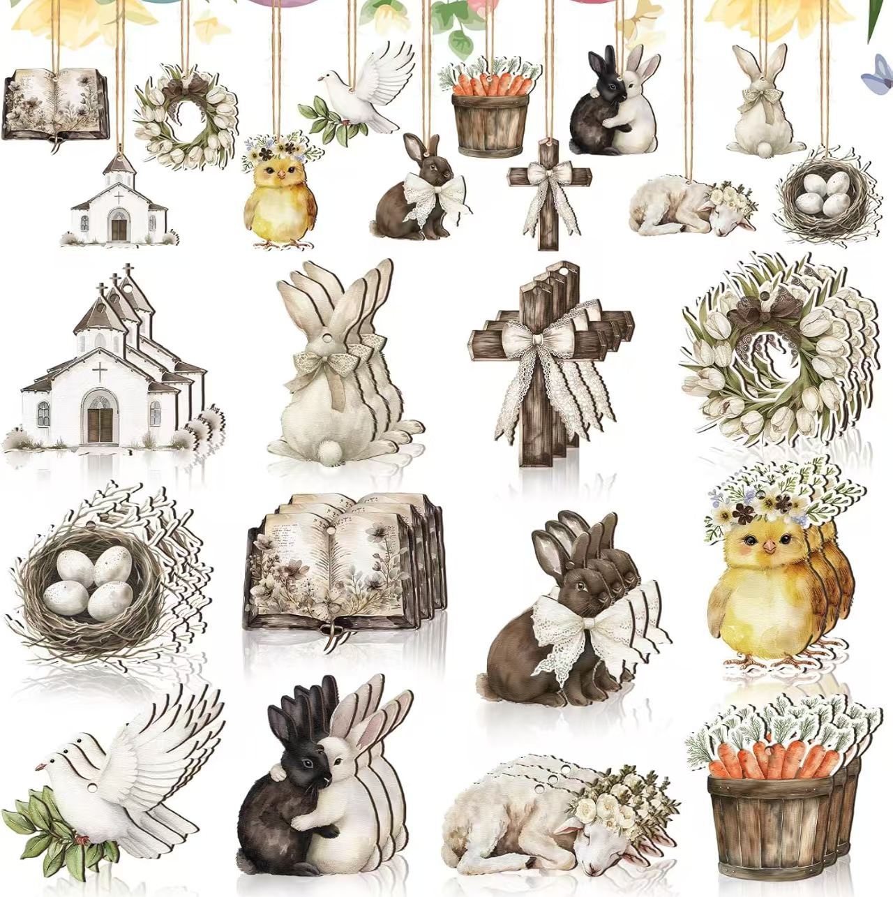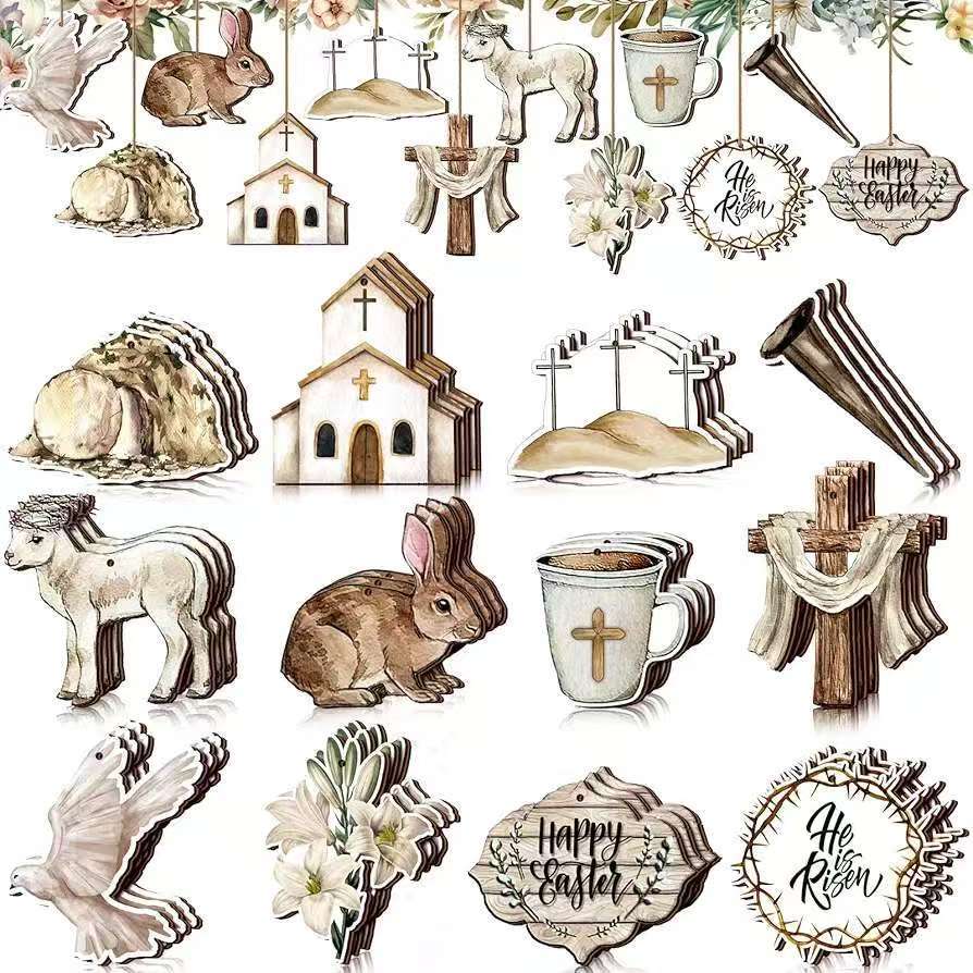24件复活节木质装饰品挂件春季复活节木质挂件