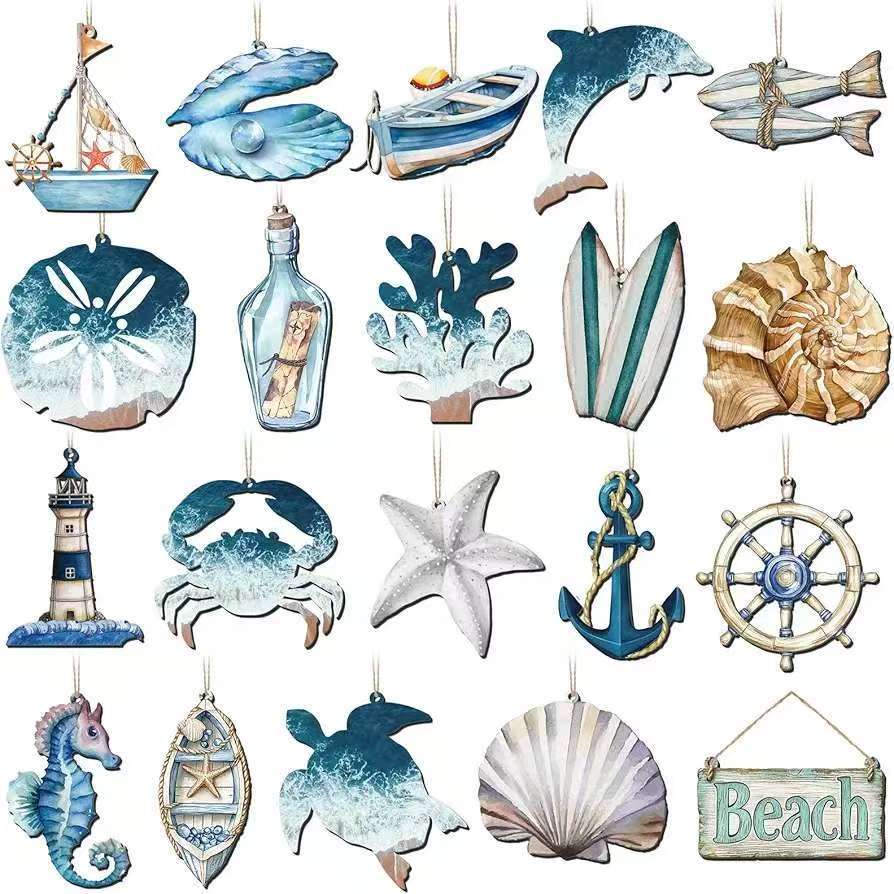 夏季新款20件海洋木质装饰悬挂饰品有趣的室内外套装夏季派对装饰