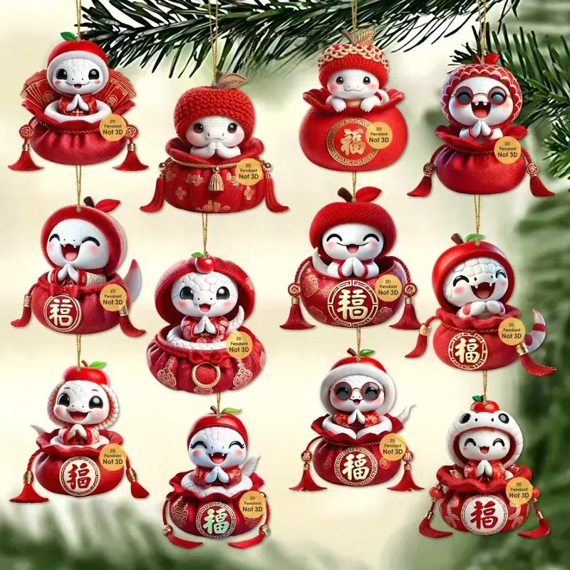 24件2D平面创意福袋幸运蛇木质装饰挂件新年吉祥礼物装饰