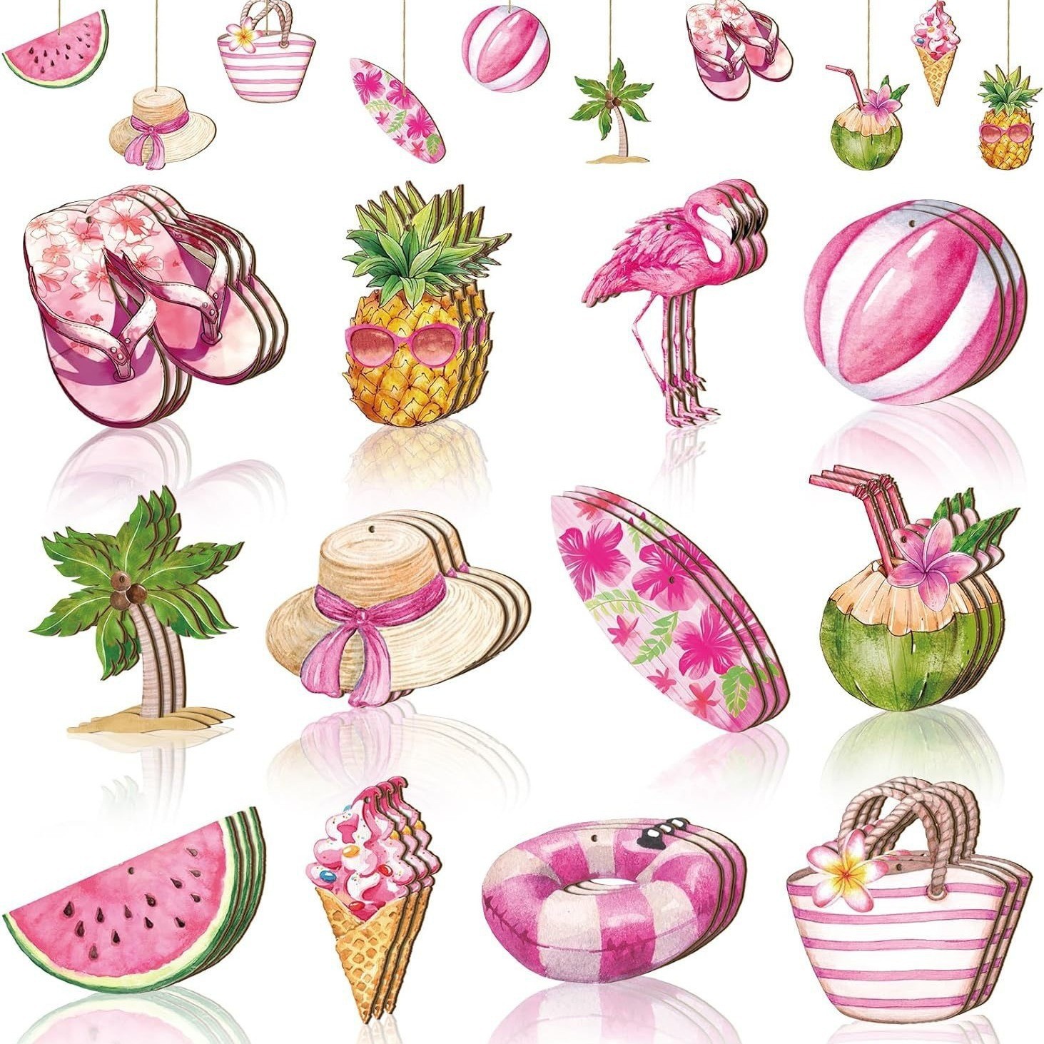 24件春夏木质悬挂装饰 创意菠萝火烈鸟椰子木质装饰品挂件