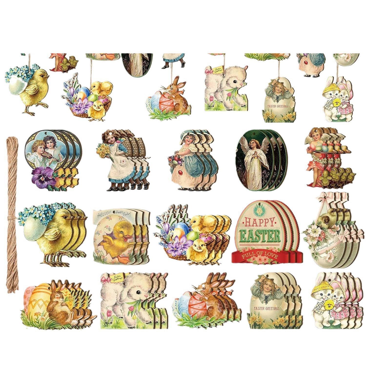 24件复活节木制复古兔子挂饰复古装饰品春季节日派对装饰品挂件