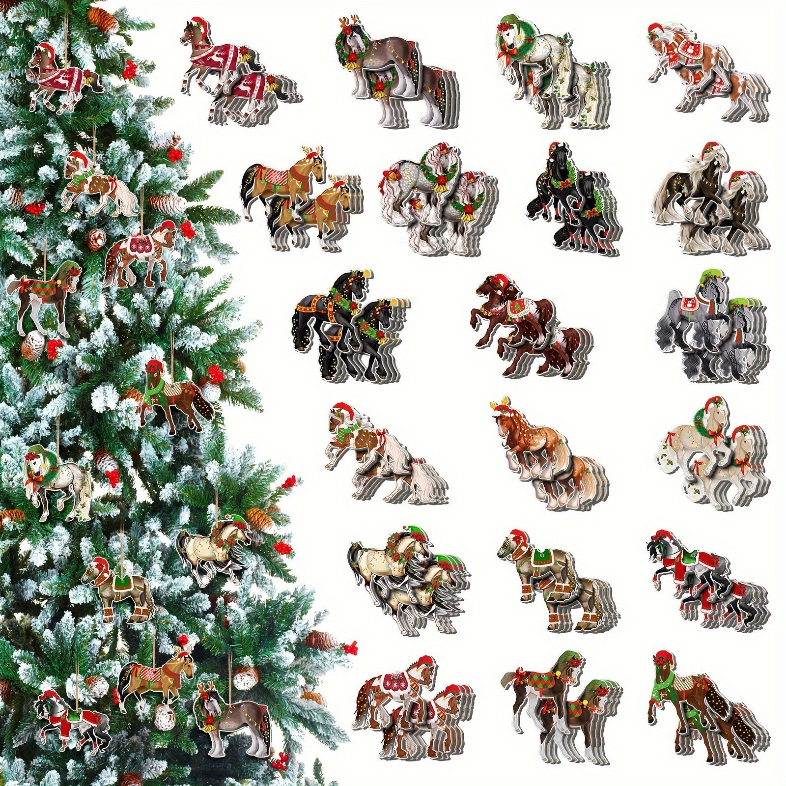 跨境新品20件圣诞马木制悬挂装饰适用于农场庭院装饰布置