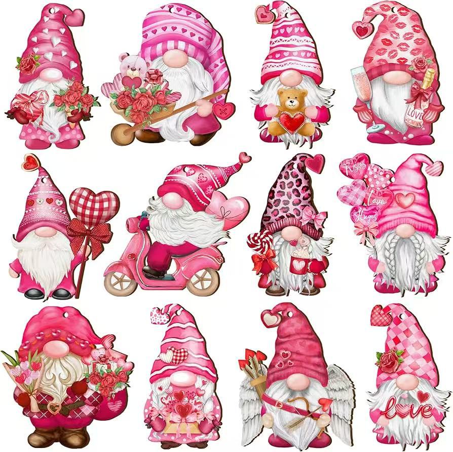 新款12件情人节木制挂饰爱心形小矮人婚礼家居派对装饰挂饰挂件