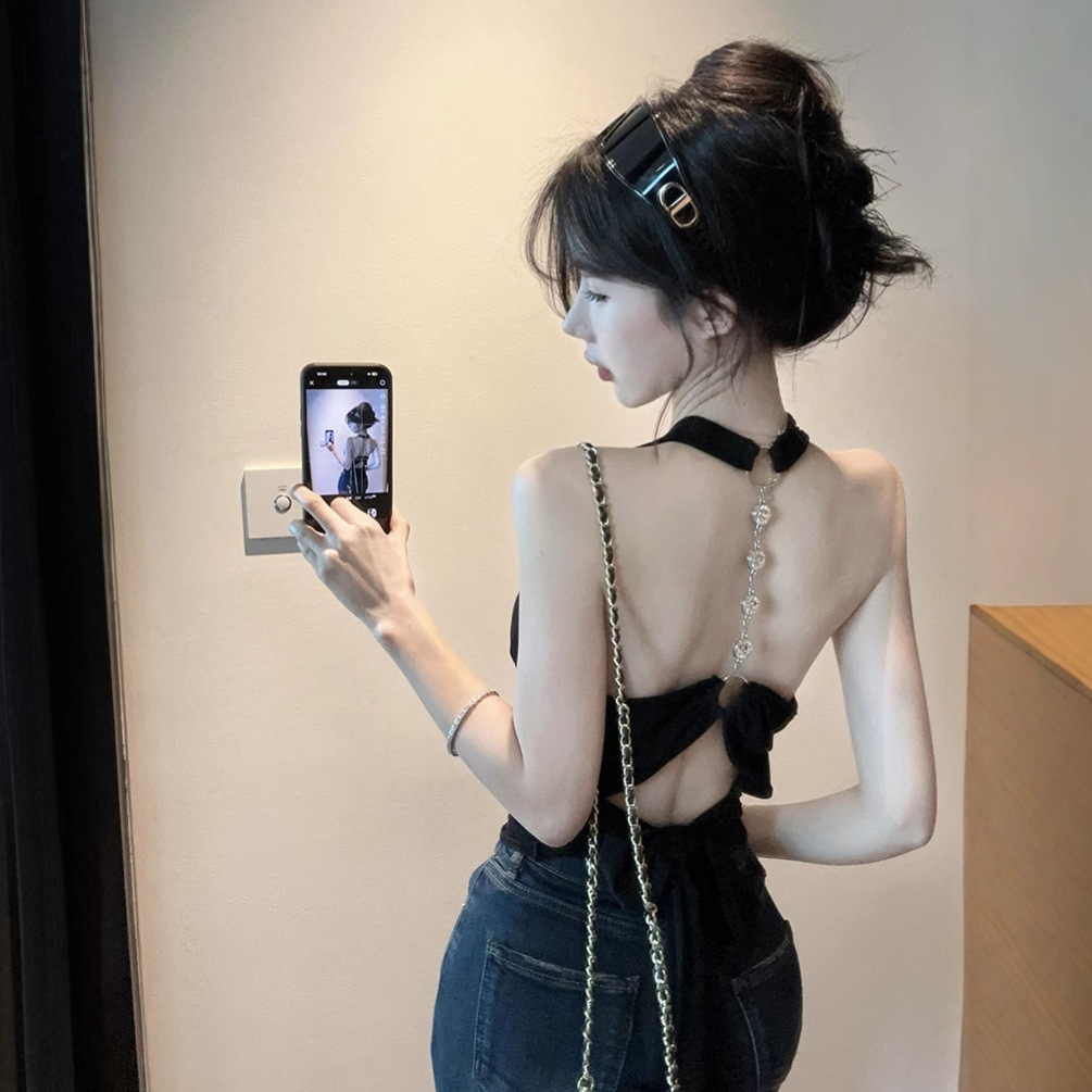 街区焦点 美式辣妹设计感吊带小背心女夏季新款修身显瘦露背上衣