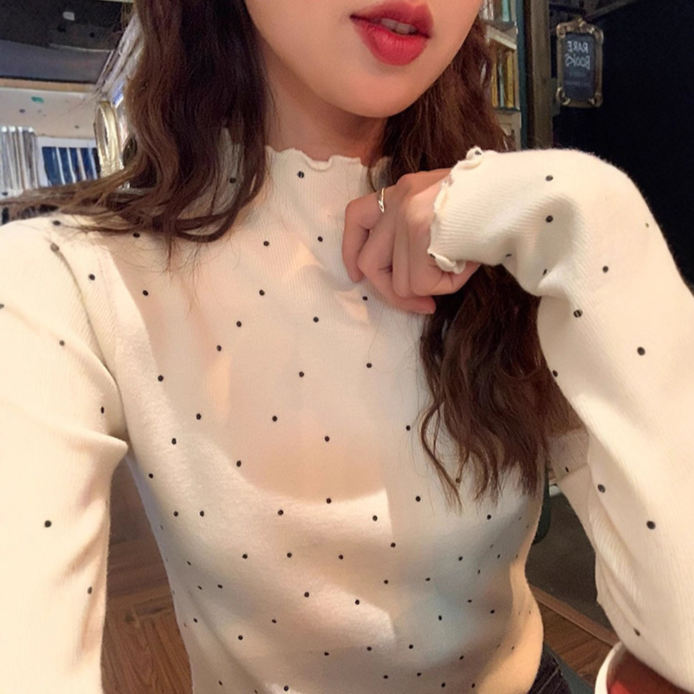 木耳边半高领甜美软糯波点打底女2025秋季新款百搭气质显瘦上衣