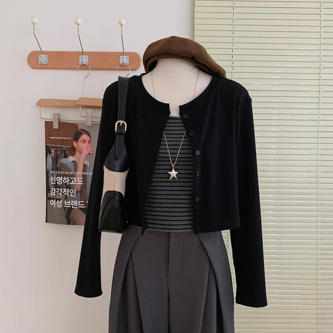 韩系套装2025秋季新款撞色条纹吊带内搭外套开衫显瘦上衣两件套女