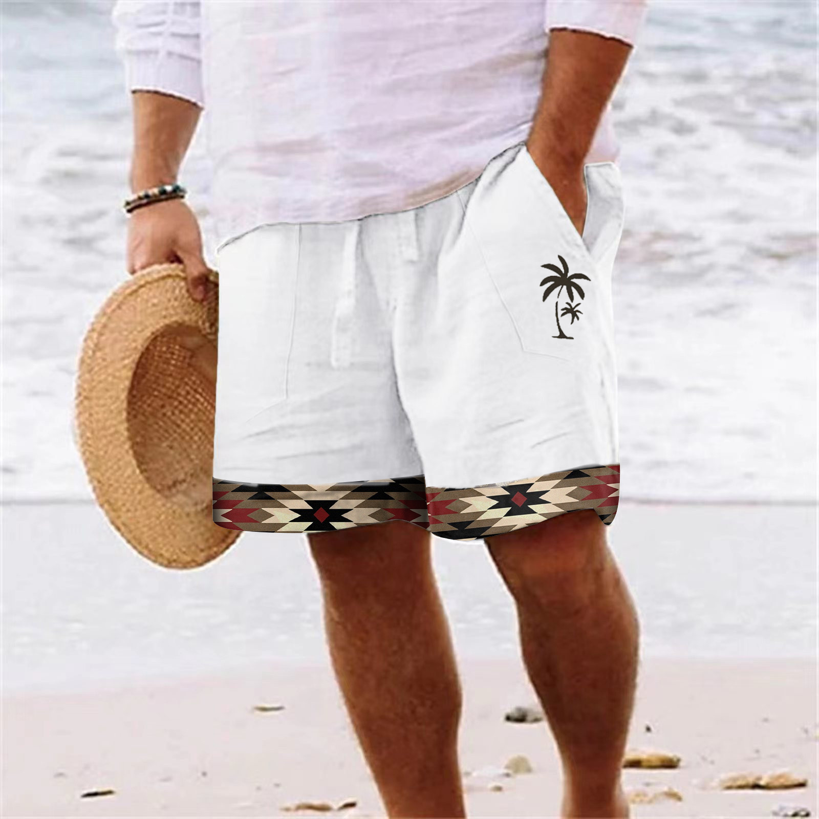 玲珑麻夏季新款男装temu拼多多3D数码印花短裤宽松款直筒沙滩裤批