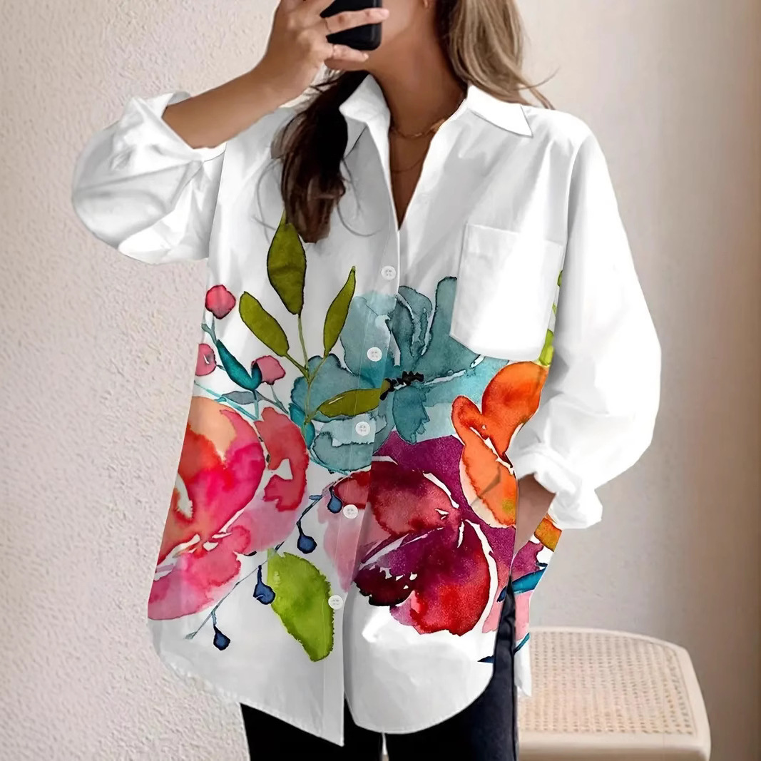 2025新款女士长款衬衫夏季欧美潮流3D印花花卉图案衬衫 POD