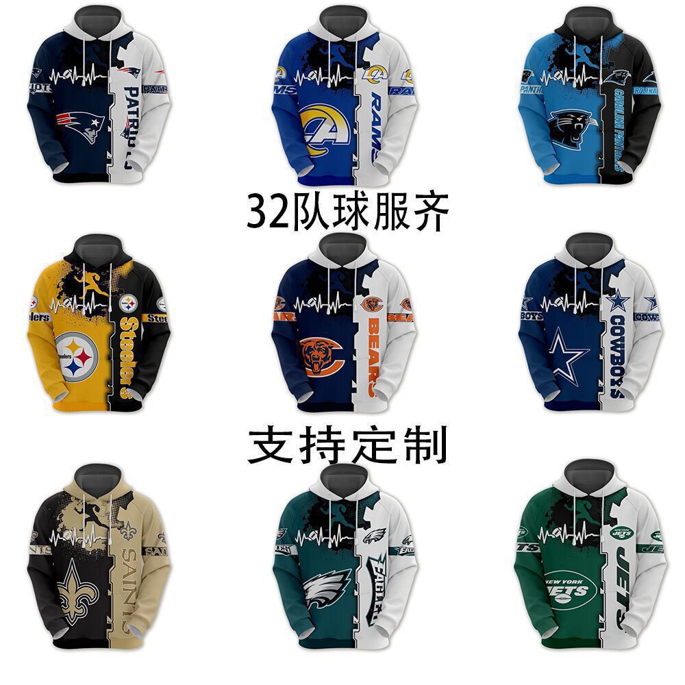 2024年外贸3D数码印花新款NFL心电图一套系列图男女适用连帽 卫衣
