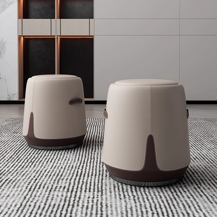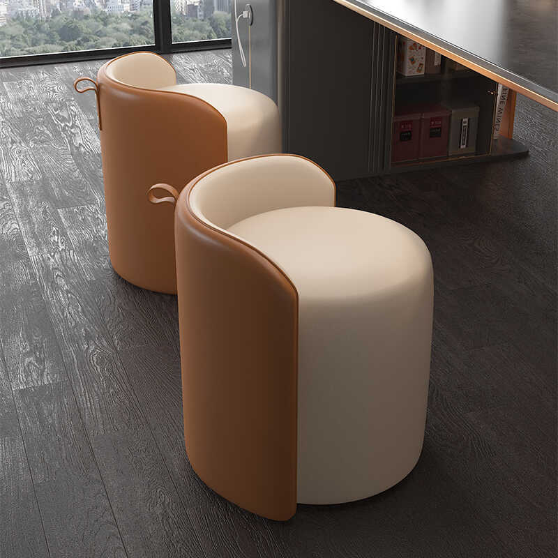 梳妆凳北欧轻奢茶桌凳子家用意式极简功夫茶台皮艺圆形凳化妆凳子