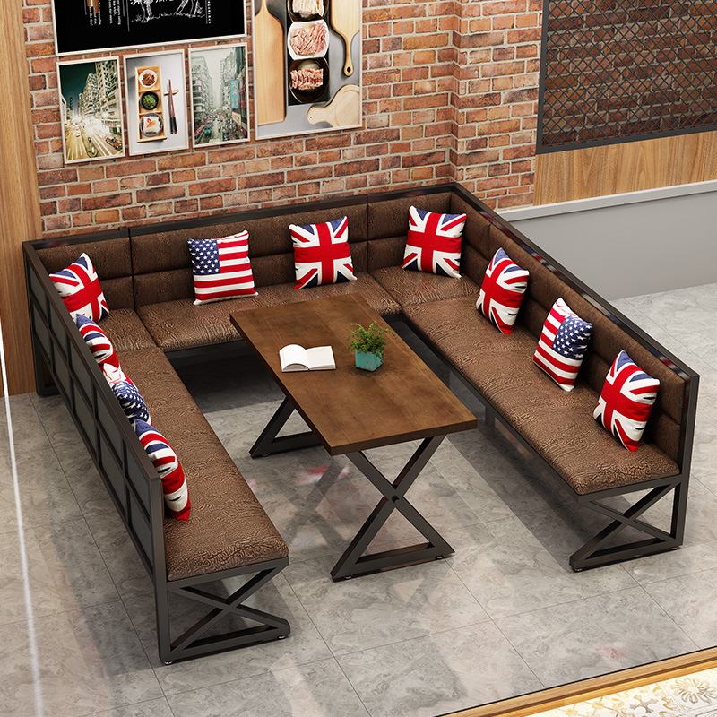 复古工业风餐厅卡座沙发商用背靠背烧烤饭店酒吧清吧铁艺桌椅组合