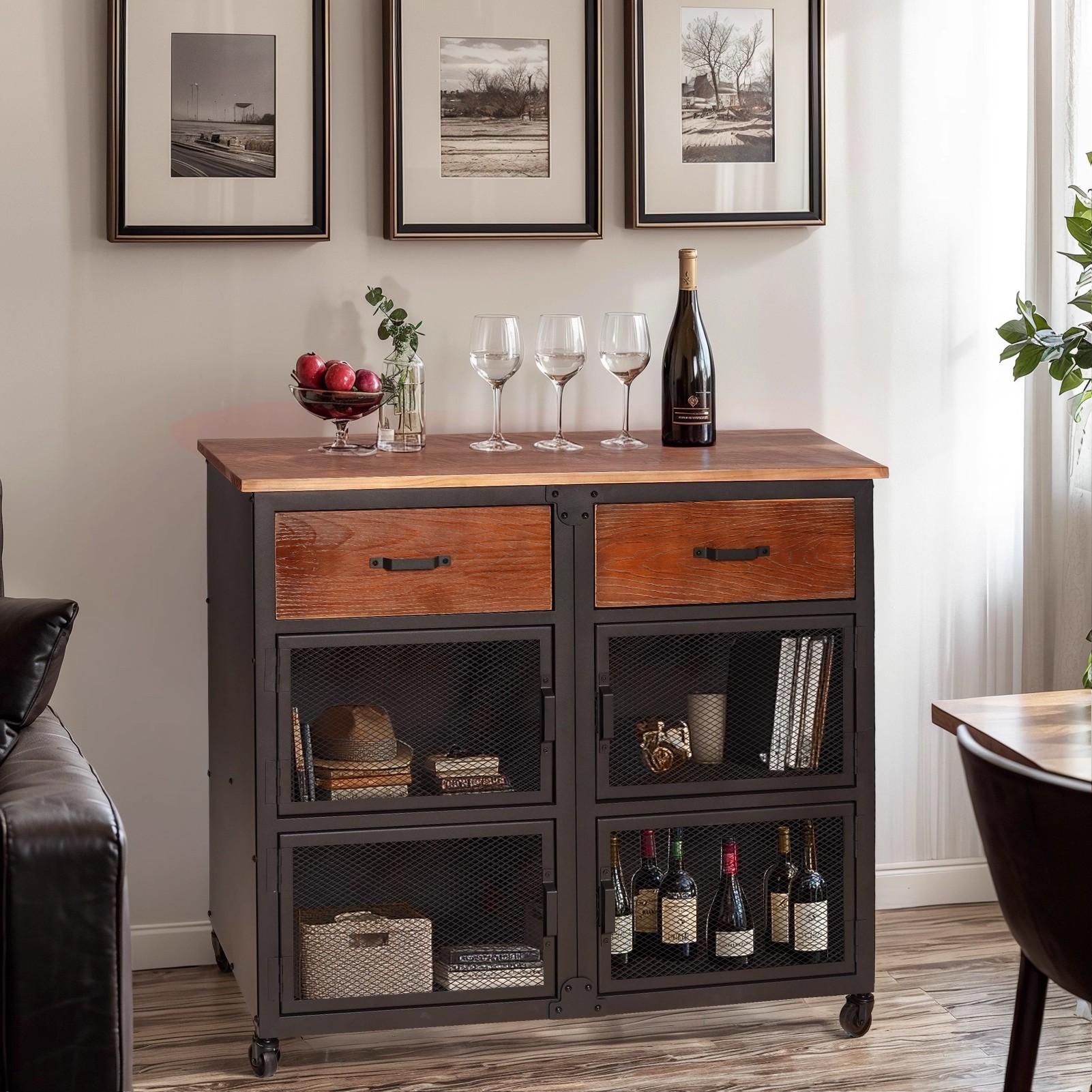 loft美式工业风餐边柜铁艺实木储物柜厨房碗柜餐厅备餐柜斗柜酒柜