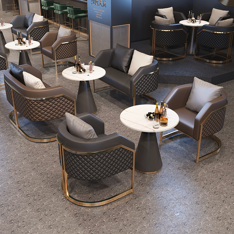 轻奢咖啡厅奶茶4S店休闲休息区洽谈接待商用餐厅卡座沙发桌椅组合