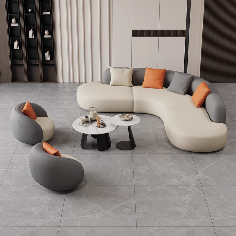 售楼处洽谈沙发组合现代酒店会所大堂美容院弧形沙发接待卡座组合