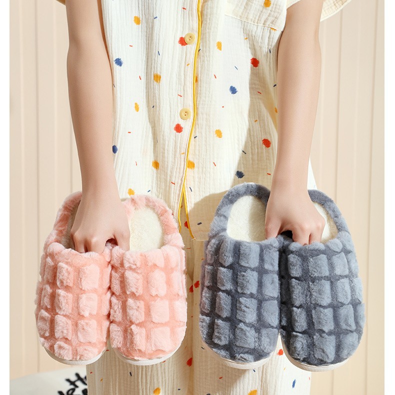 棉拖女士方块云朵毛绒棉拖鞋多色软萌加绒保暖鞋厚底防滑居家拖鞋