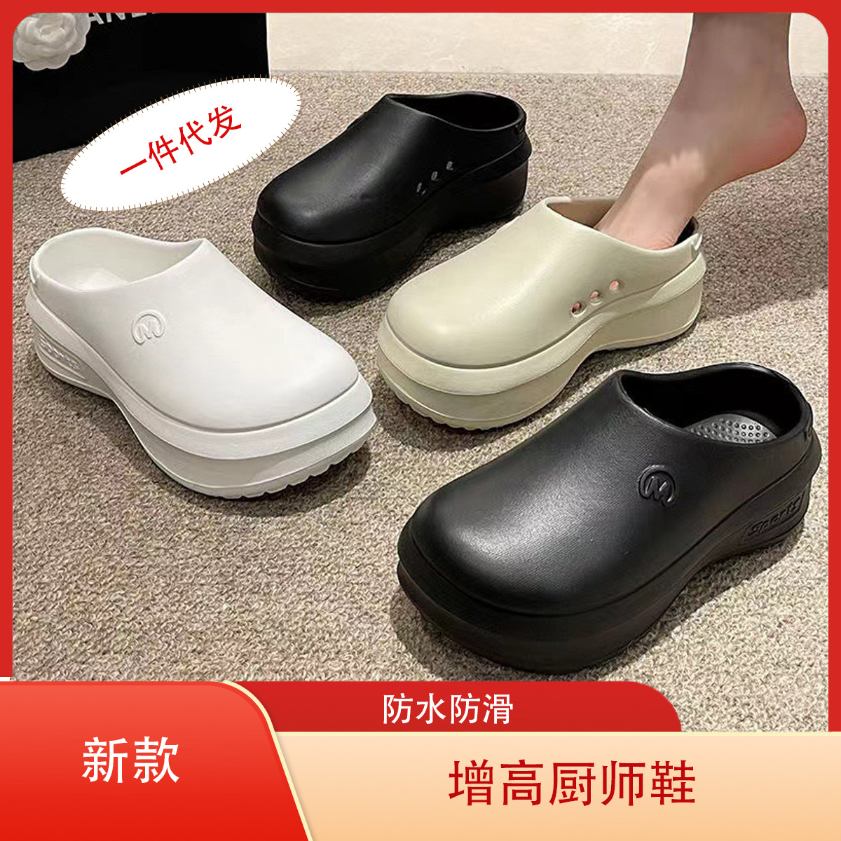 增高厨师鞋一体拖鞋厚底包头外穿新款轻便防滑洞洞鞋半拖鞋女批发