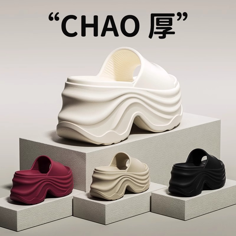 夏季波浪厚底潮酷凉拖增高踩屎感拖鞋多色机能可外穿个性一字拖鞋
