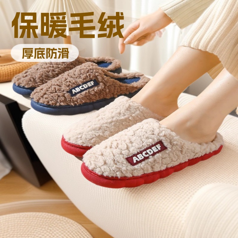 踩屎感棉拖鞋羊羔毛棉拖鞋情侣款加绒保暖居家鞋厚底防滑棉拖鞋男
