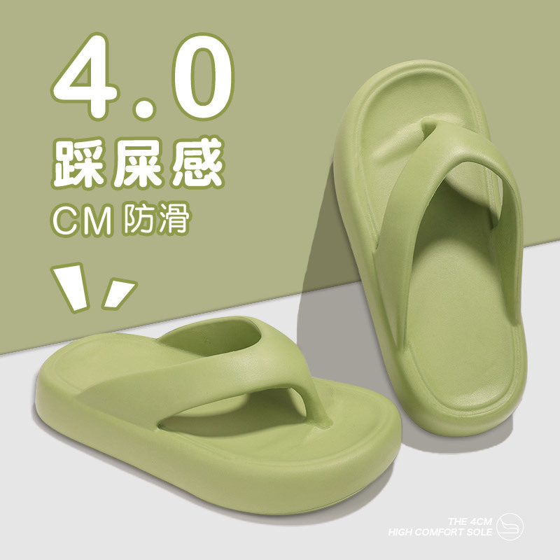情侣二代椰子踩屎感厚底凉拖极简纯色软弹拖鞋居家外穿防滑一字拖