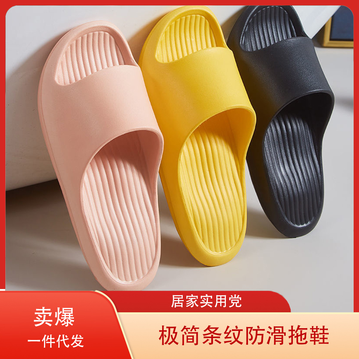 夏季条纹防滑拖鞋软弹舒适居家浴室男女同款轻便凉拖防滑纹理厚底