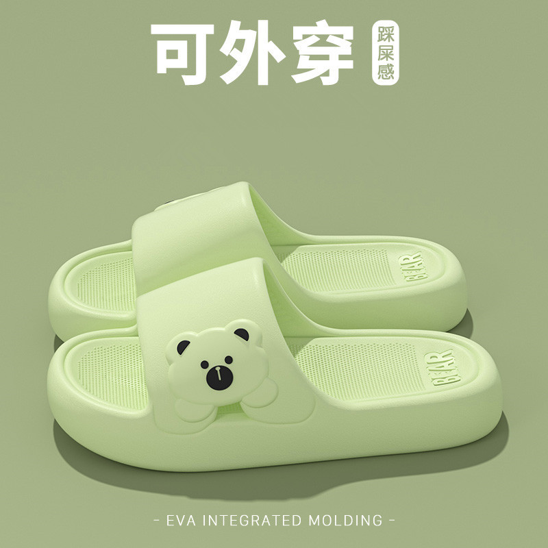 小熊一字拖鞋软弹厚底踩屎感防滑舒适居家拖可爱装饰外穿轻便凉拖
