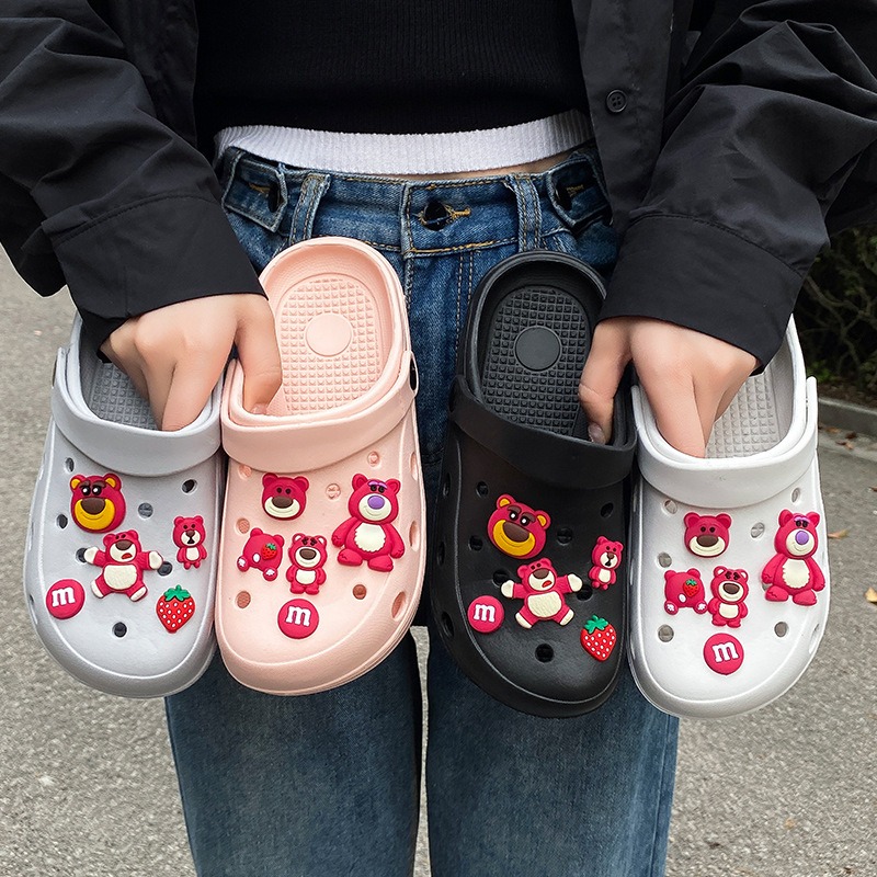 卡通草莓熊厚底洞洞鞋女款外穿新款包头凉鞋沙滩踩屎感男士凉拖