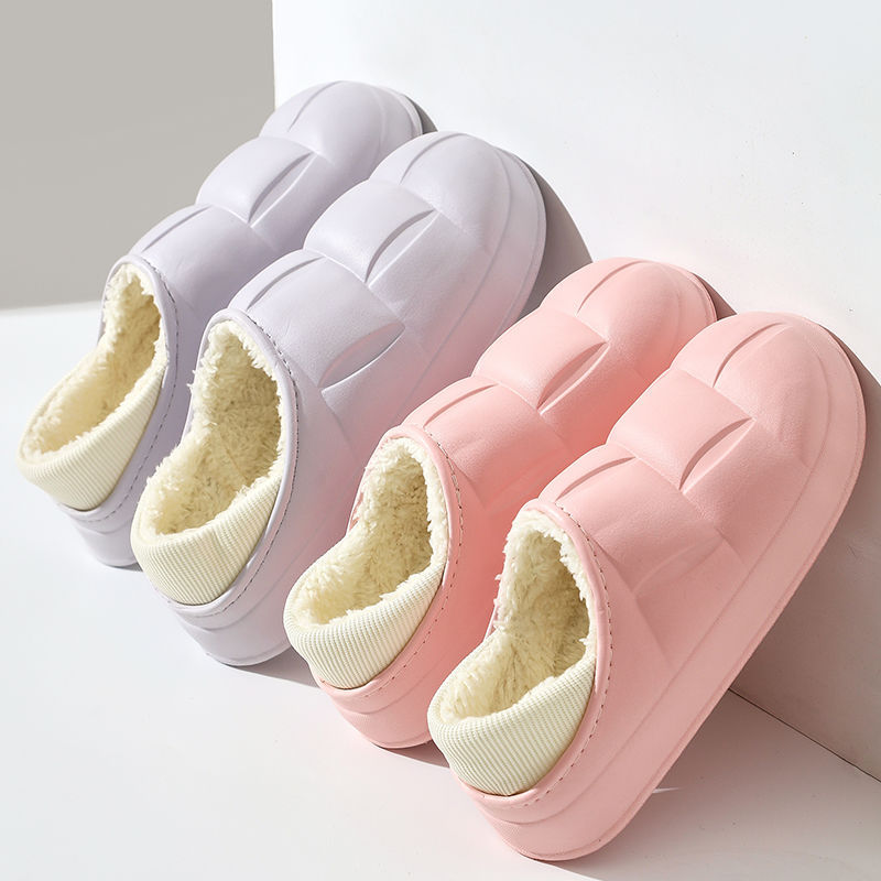 冬季面包泡芙防水棉拖鞋女款加绒保暖居家鞋软萌多色厚底防滑拖鞋