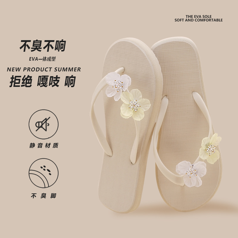 夏季花朵装饰人字拖软萌仙女风夹脚拖CHAO软舒适海边夹脚防滑凉拖