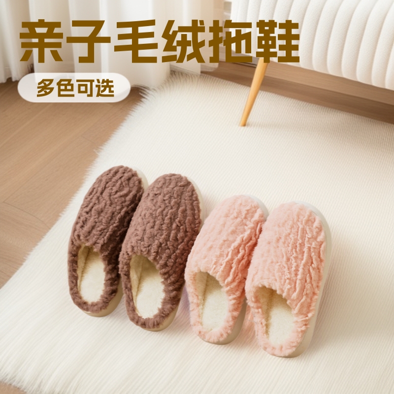 休闲棉拖鞋女款秋冬季2025新款亲子室内居家居儿童毛绒拖鞋男冬天