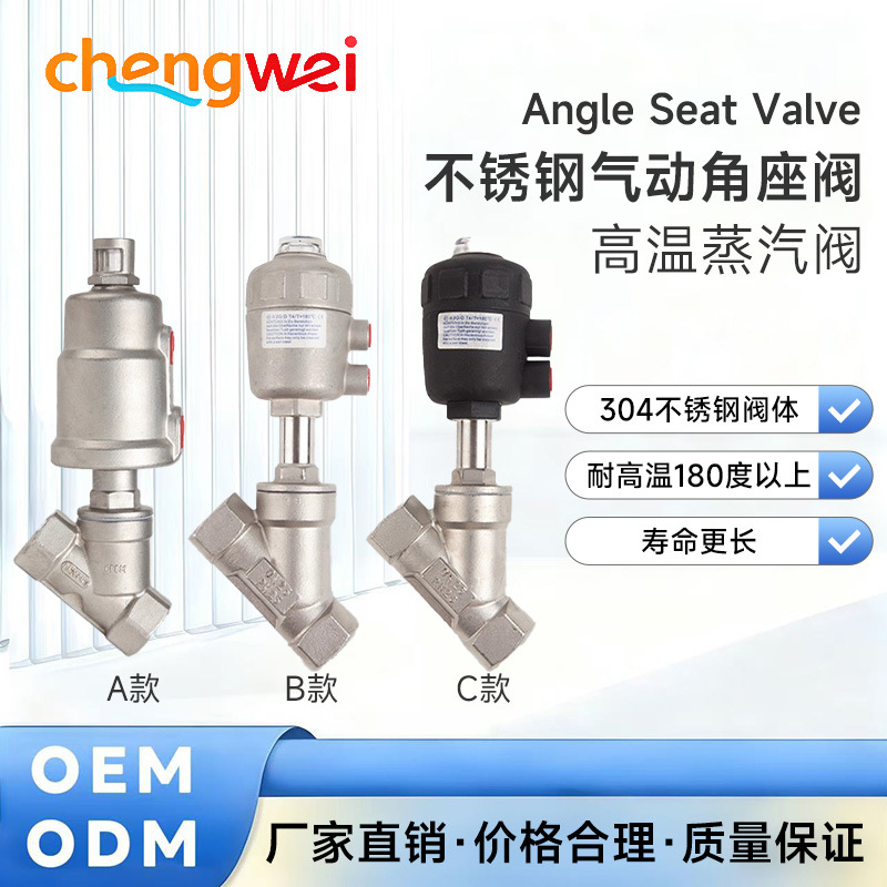 不锈钢气动角座阀快装式Y型高温蒸汽阀门DN15 20 25 32 40 50角阀