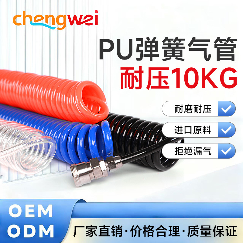 气动PU8/10/12弹簧管空压机软管气泵高压伸缩螺旋带接 头风管气管