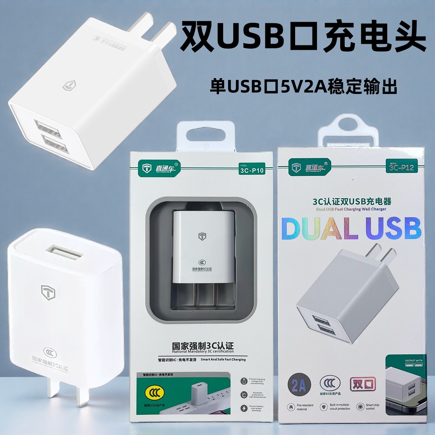 3C认证5V2A双USB充电器适用苹果安卓华为手机充电头电源适配器