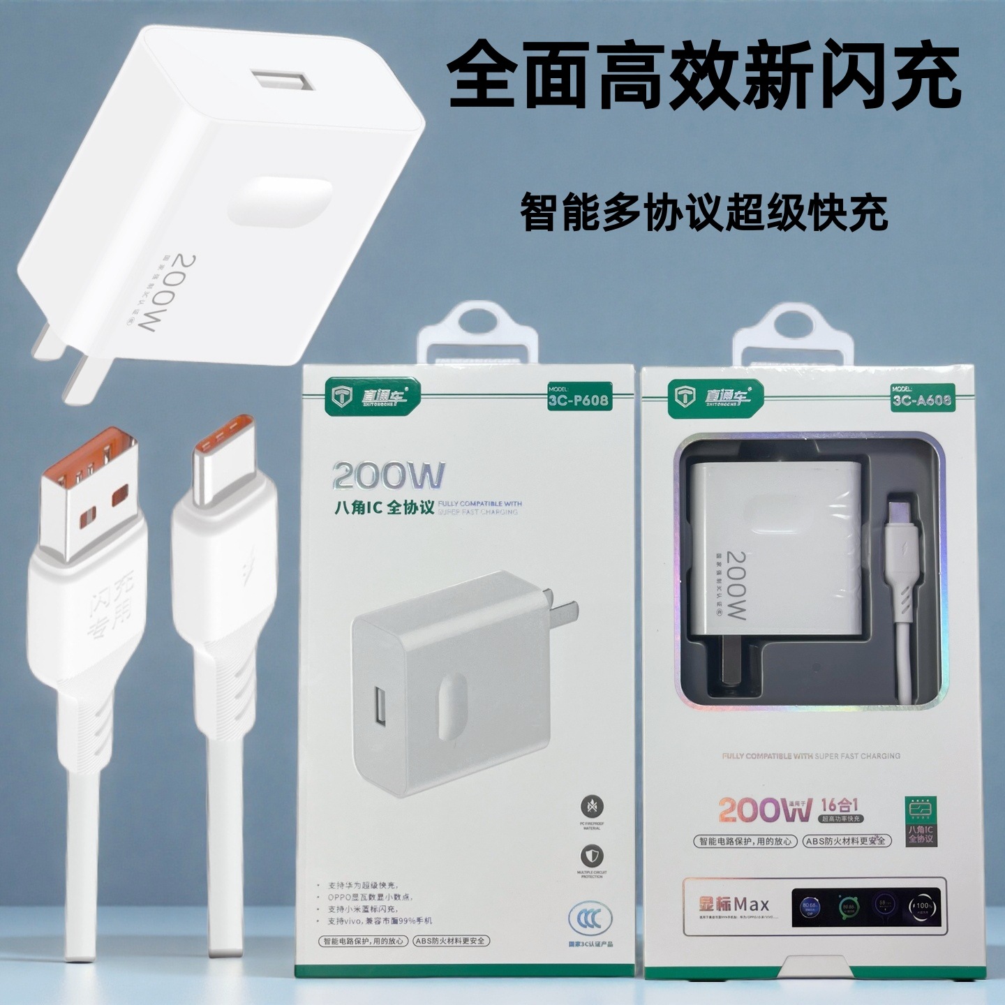 直通车200W充电器套装适用安卓华为荣耀vivo苹果17手机充电头批发